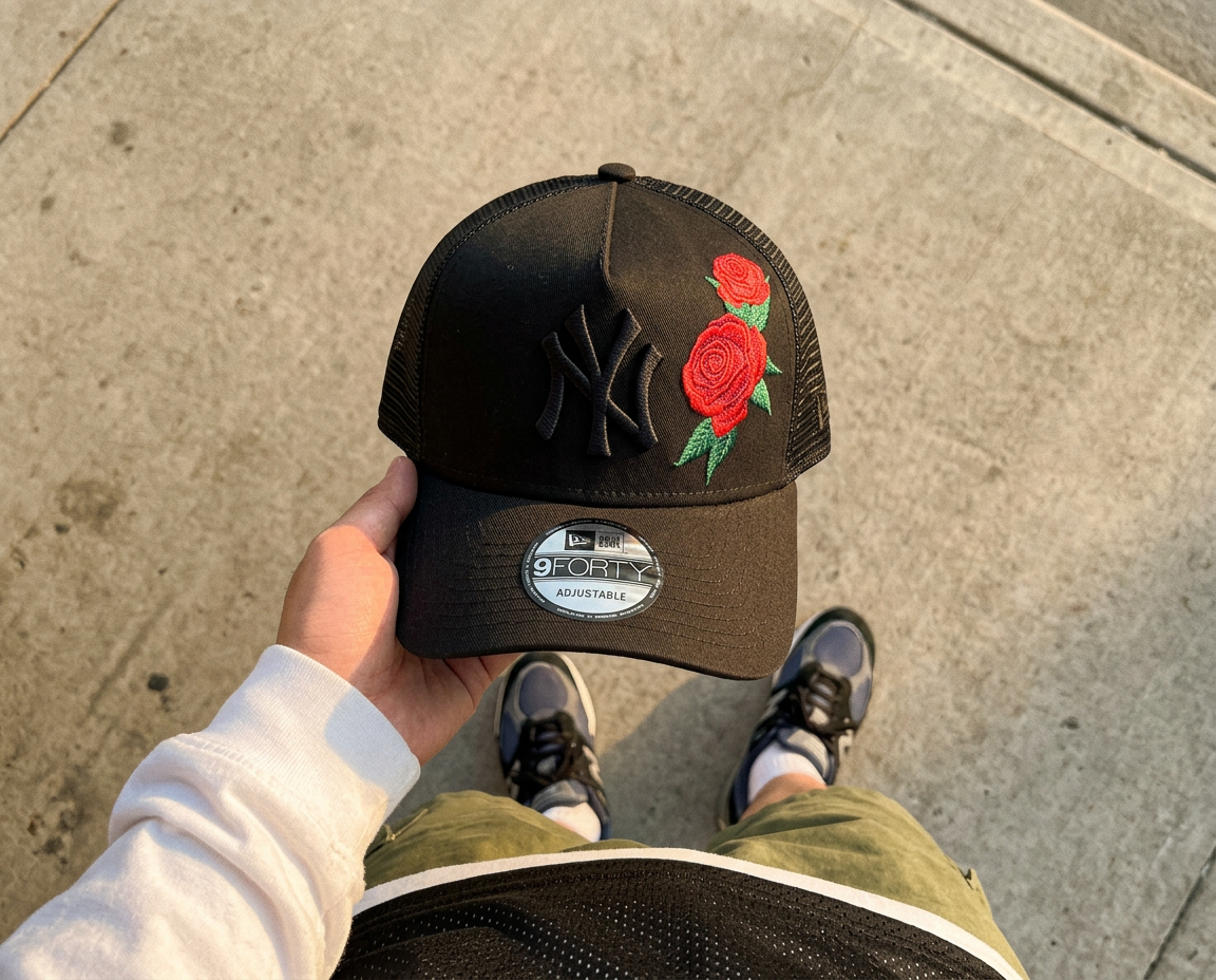 Hatstore Exclusive x New York Yankees Rose 9FORTY Black A-frame Trucker